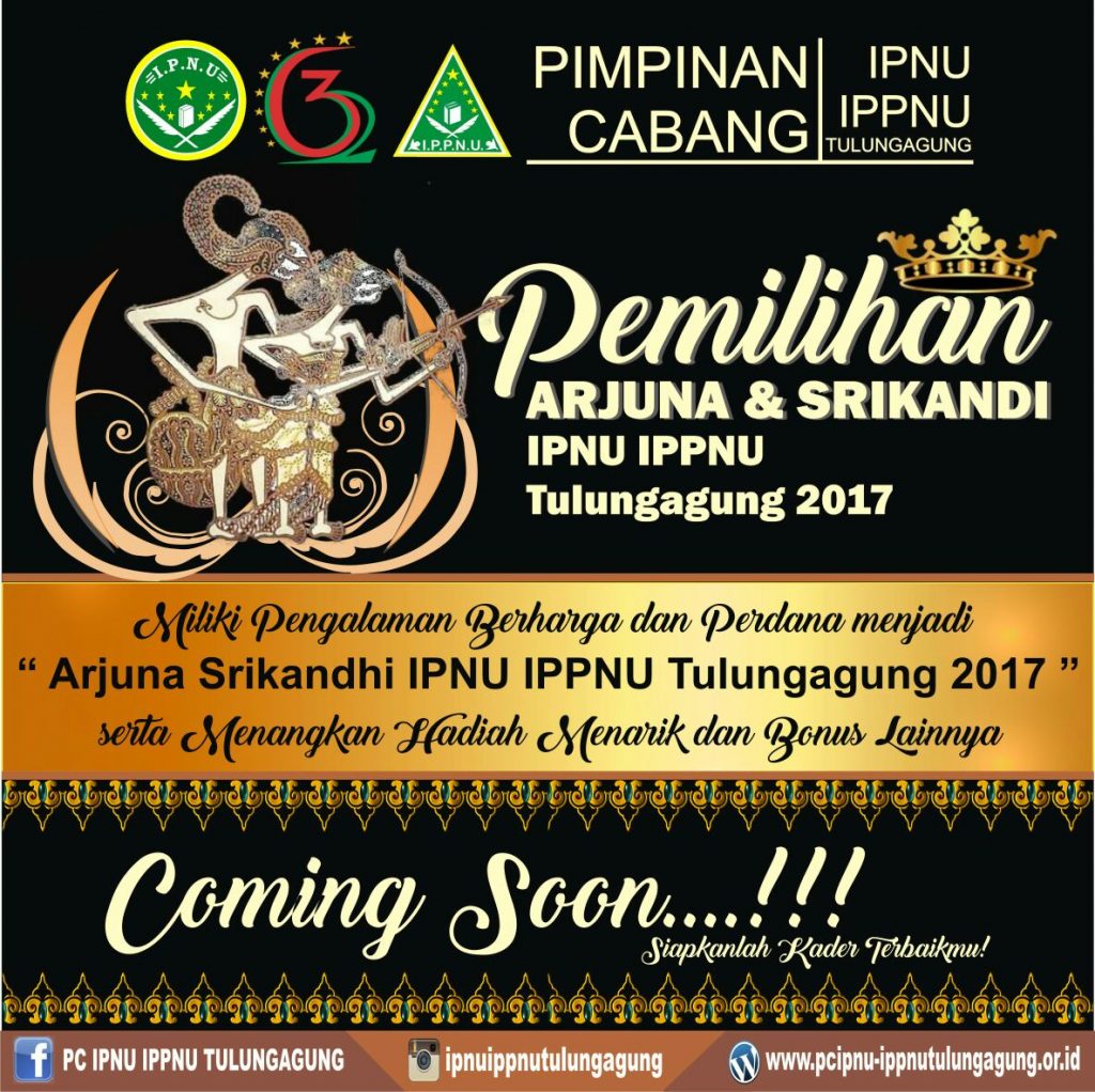 - Final Pemilihan Arjuna IPNU dan Srikandi IPPNU Tulungagung (19 Pebruari 2017), Aula PCNU Tulungagung Pukul 13.00 WIB – selesai