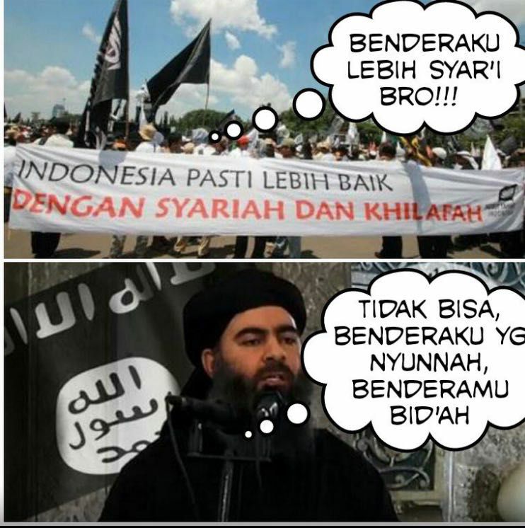 9. Jadi kalau ISIS dan HTI tiap saat mengibarkan liwa dan rayah, emangnya kalian mau perang terus? Kok kemana-mana mengibarkan bendera perang?
